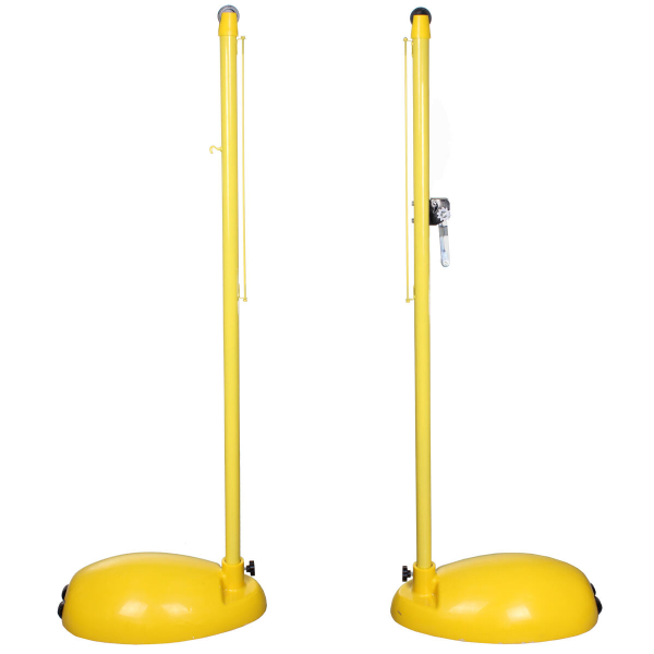 Merco BS-19 jsou mobilní badmintonové sloupky vhodné pro rekreační i profesionální využití a to všude tam, kde situace neumožňuje instalaci pevných sloupků, v interiéru i exteriéru. Badmintonové stojany Merco BS-19 jsou kompletně vyrobené z moderního “eco-friendly“ plastu ABS (mimořádně pevný a houževnatý technický plast s vysokou odolností proti tlakovým rázům a vhodný do jakéhokoliv počasí), jen základny jsou navíc vyplněné betonem (každá váží 28,5 kg, takže stabilita stojanů za běžného používání je stoprocentně zaručena). Volně stojící sloupky na badminton Merco BS-19 mají oficiální výšku 155 centimetrů, jsou vybaveny napínacím mechanismem, horními kladkami a systémem pro upnutí sítě. Síť není součástí sady přenosných badmintonových stojanů Merco BS-19 a to z toho důvodu, aby si každý mohl dokoupit síť podle vlastních výkonnostních požadavků. A pár technických parametrů na závěr: jedna základna má rozměr (D x Š x V) 60 x 33 x 18 cm a hmotnost 28,5 kg a jeden sloupek má rozměr (D x P) 155 x 4 cm a hmotnost 2,5 kg.