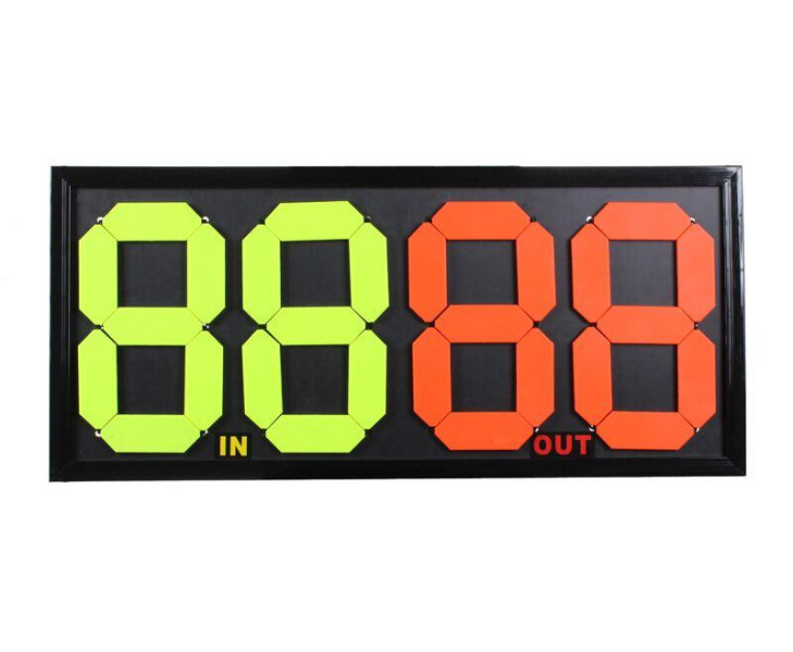 Oboustranná mechanická tabule pro střídání Merco Double je velmi oblíbená mezi trenéry a fotbalovými kluby. Ovládání tabule je velice jednoduché pomocí systému gumiček. Výhodou tohoto modelu je, že z obou stran je možné vidět kdo jde do hry a kdo ven. Číslice jsou velmi dobře viditelné i z větších vzdáleností a to díky světlé žluté a oranžové barvě. Celkové rozměry ukazatele jsou přibližně 84 x 38 x 2 cm. Tato mechanická tabule patří do základních modelů. Pokud hledáte profesionálnější tabule pro střídání, nabízíme také LED elektronické tabule.