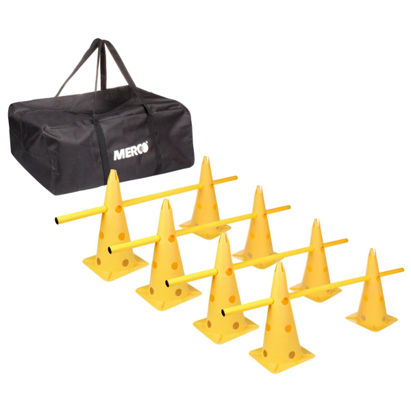 Agility set Merco Jump 4HS38 je praktická pomůcka pro vaše tréninky v tělocvičně či venku. Agility překážky se hodí pro sportovce všech sportovních odvětví, kluby a školy. Díky agility sadě si zlepšujete svou kondici, efektivně trénujete rychlost a koordinaci dolních i horních končetin. Sada pro základní trénink Merco Jump 4HS38 obsahuje osm kuželů s otvory a výškou 38 cm a čtyři dvoudílné skládací tyče, které mají po složení celkovou délku 1 m a průměr 25 mm. Součástí sady je i praktický vak z polyesteru s popruhy do ruky pro snadné přenášení a uskladnění mezi jednotlivými tréninky. Jump 4HS38: - 8x kužel s otvory 38 cm - 4x dvoudílná skládací tyč - polypropylen, polyester - hmotnost sady: 2,4 kg - součástí praktická taška