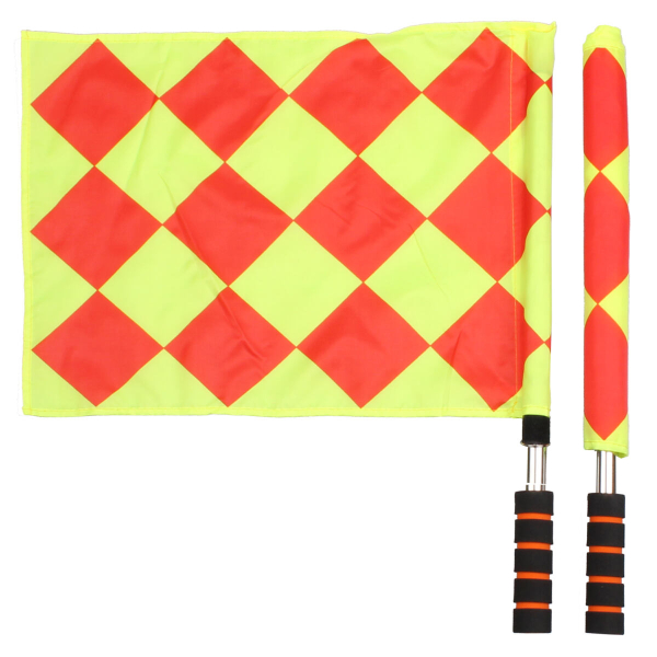 Sada dvou kusů praporků pro pomezní rozhodčí Merco Line nabízí lehkou plastovou konstrukci s příjemnými molitanovými rukojeťmi a speciální vzor "diamant" v kombinaci červených a zářivě žlutých barvách pro snadnou viditelnost po celé ploše hřiště. Praporek 470 x 340 mm; délka 50 cm.